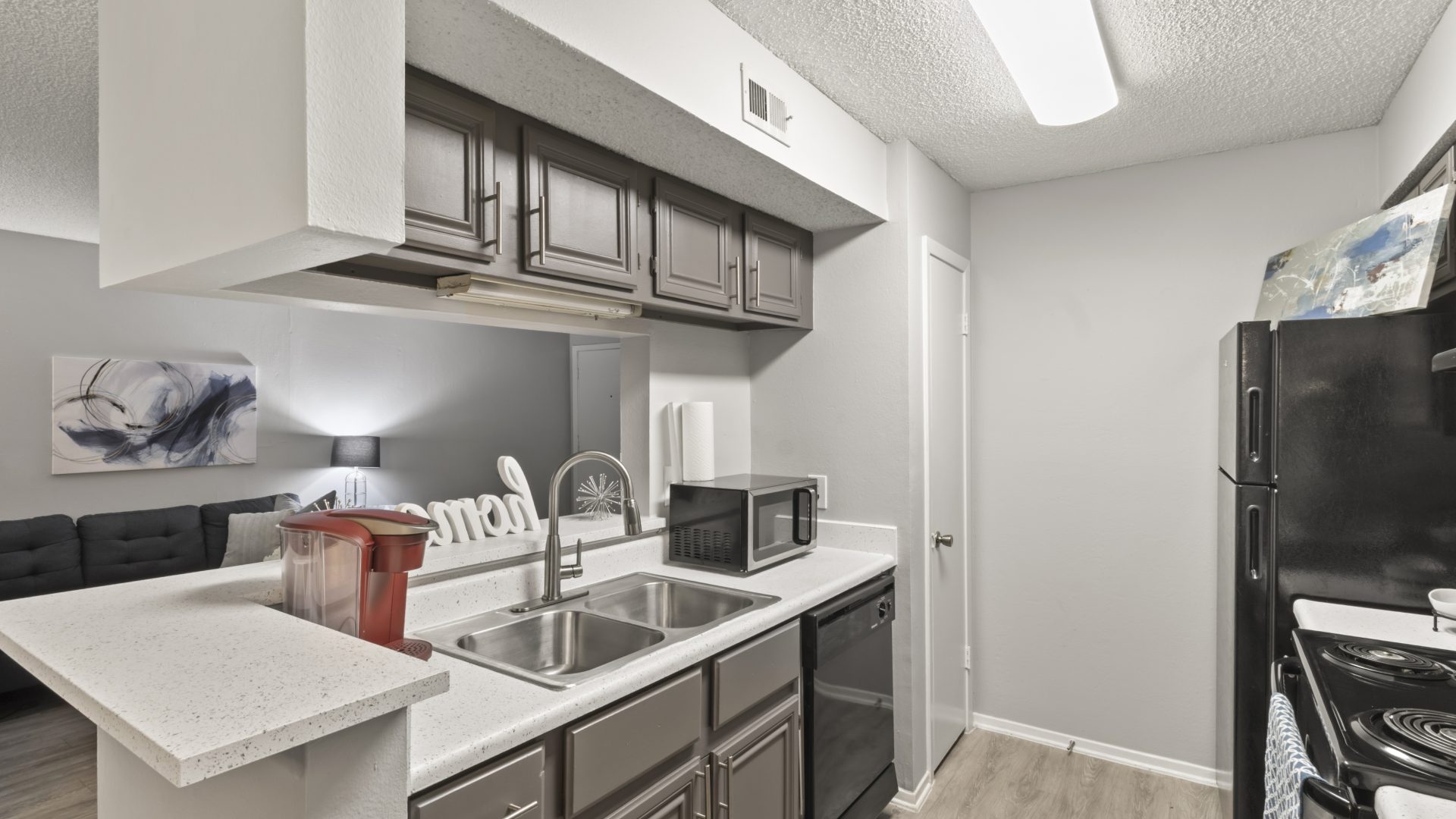 - Fully-equipped Kitchen including Refrigerator with Ice Maker, Range, and Dishwasher